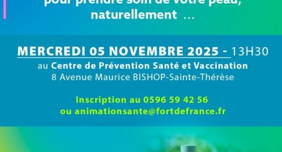 05 nov Atelier de confection de cosmétiques maisons naturels 13h30 Centre de Prévention Santé et Vaccination de Fort-de-France